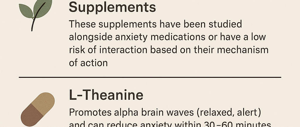 These supplements have been studied alongside anxiety medications or have a low risk of interaction based on their mechanism of action: